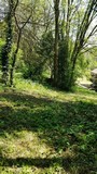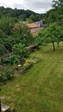 Un portail au fond de la cour en pierre mène au jardin avec des arbres fruitiers, et au parc arboré dans lequel se cache un petit bâtiment du 19ème siècle, peut être chapelle ou même nid d'amour. Au bout du parc se trouve une petite route (sans issue) menant à de nombreuses possibilités de randonnées.