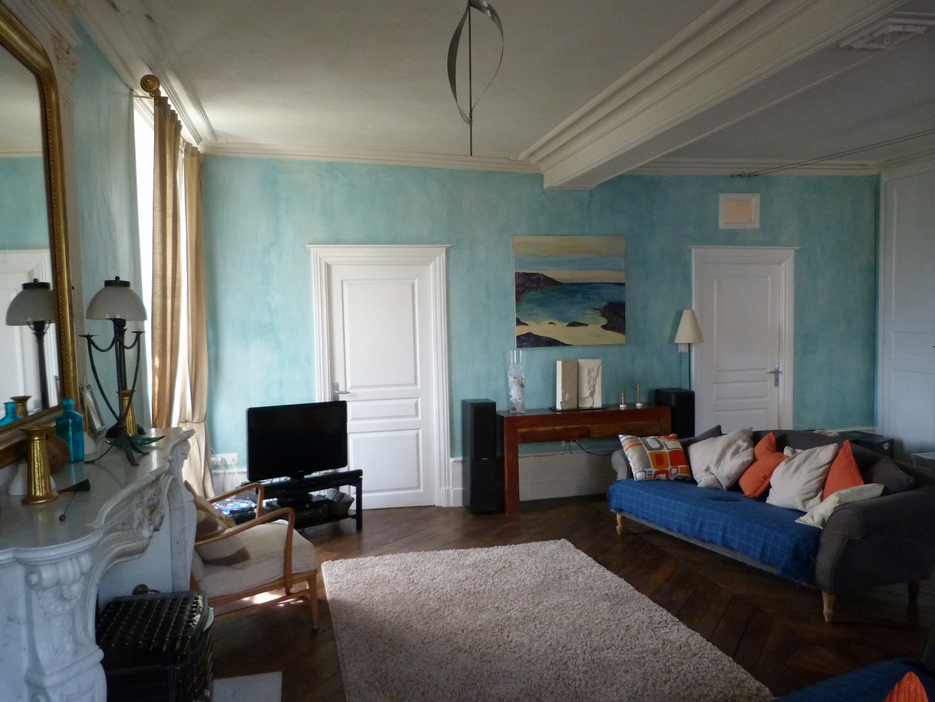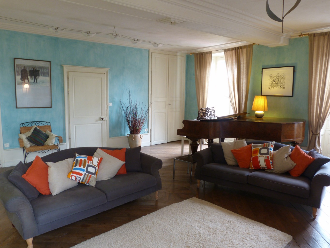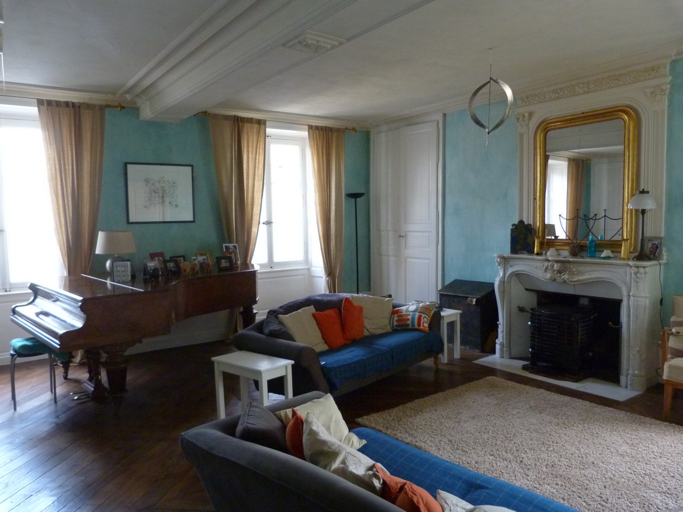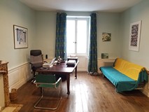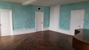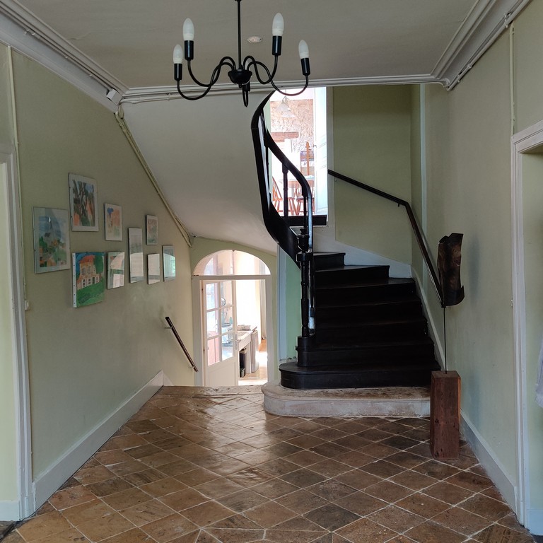 Une grande entrée avec un sol d'origine en carreaux de pierre vous accueille et mène d'un côté à un salon avec une superbe cheminée en marbre, des boiseries et un parquet magnifique et insolite, et de l'autre à la salle à manger d'origine, maintenant un bureau.